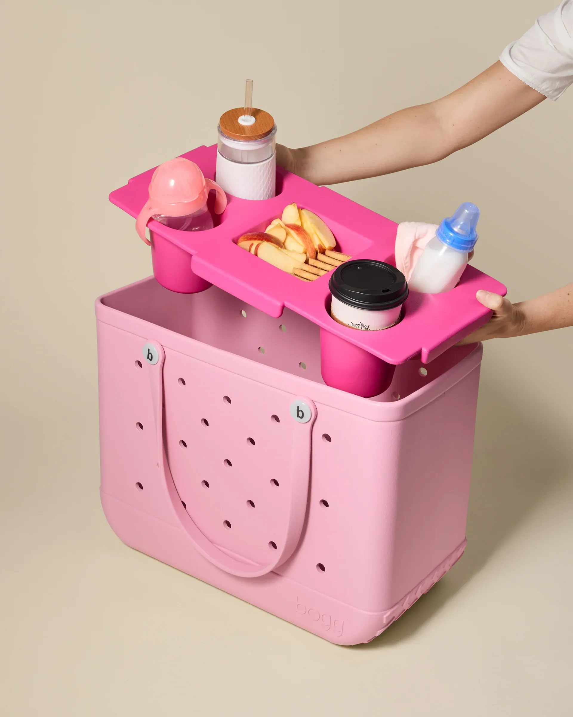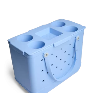 Turn the Original Bogg Bag into a tabletop for effortless outdoor gatherings. Made from lightweight. durable and antimicrobial EVA. Top o’ the Bogg to Ya features four cup holders and a tray-within-a-tray to keep snacks. bowls and small plates secure. Waterproof and weather-proof. this is a breeze to clean—just rinse or wipe. Perfect for picnics. camping. tailgating. beach days and al fresco happy hour.